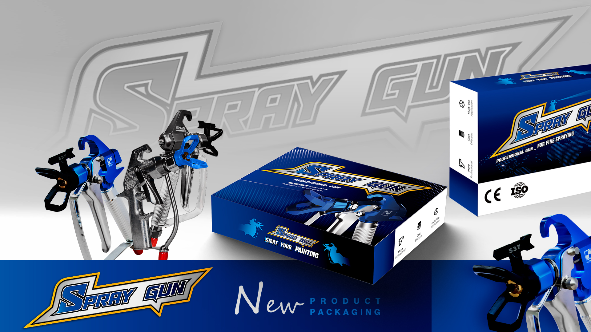 The new box for our spray guns is designed to communicate the product’s value clearly and quickly. We have placed key product features and official certifications like CE and ISO right on the front. This allows customers to easily see the tool’s capabilities and quality assurance at a glance.